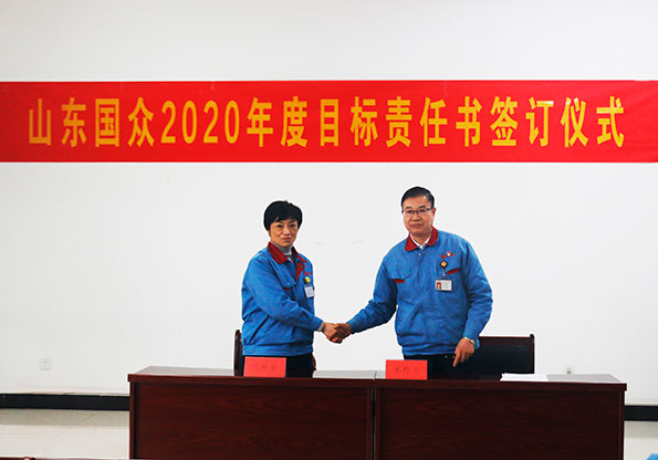 2020年1月11日下午,山東國眾在辦公樓一樓會議室舉行年度目標責(zé)任書簽訂儀式。公司領(lǐng)導(dǎo)、全體中層管理干部參加了此次簽字儀式。公司常務(wù)副總經(jīng)理劉文吉主持儀式。