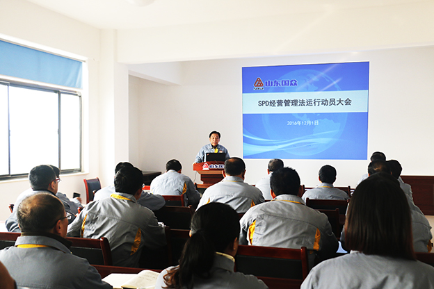 2016年12月1日上午,公司在一樓會議室組織召開了SPD經(jīng)營管理試運(yùn)行動員大會。公司總經(jīng)理謝文成、常務(wù)副總劉文吉、崔新平、財務(wù)總監(jiān)張美萍、黨總支副書記徐博、副總經(jīng)理陸毅、鄭清河等公司領(lǐng)導(dǎo)及公司中層以上管理干部參加了會議,公司常務(wù)副總經(jīng)理劉文吉主持了會議。